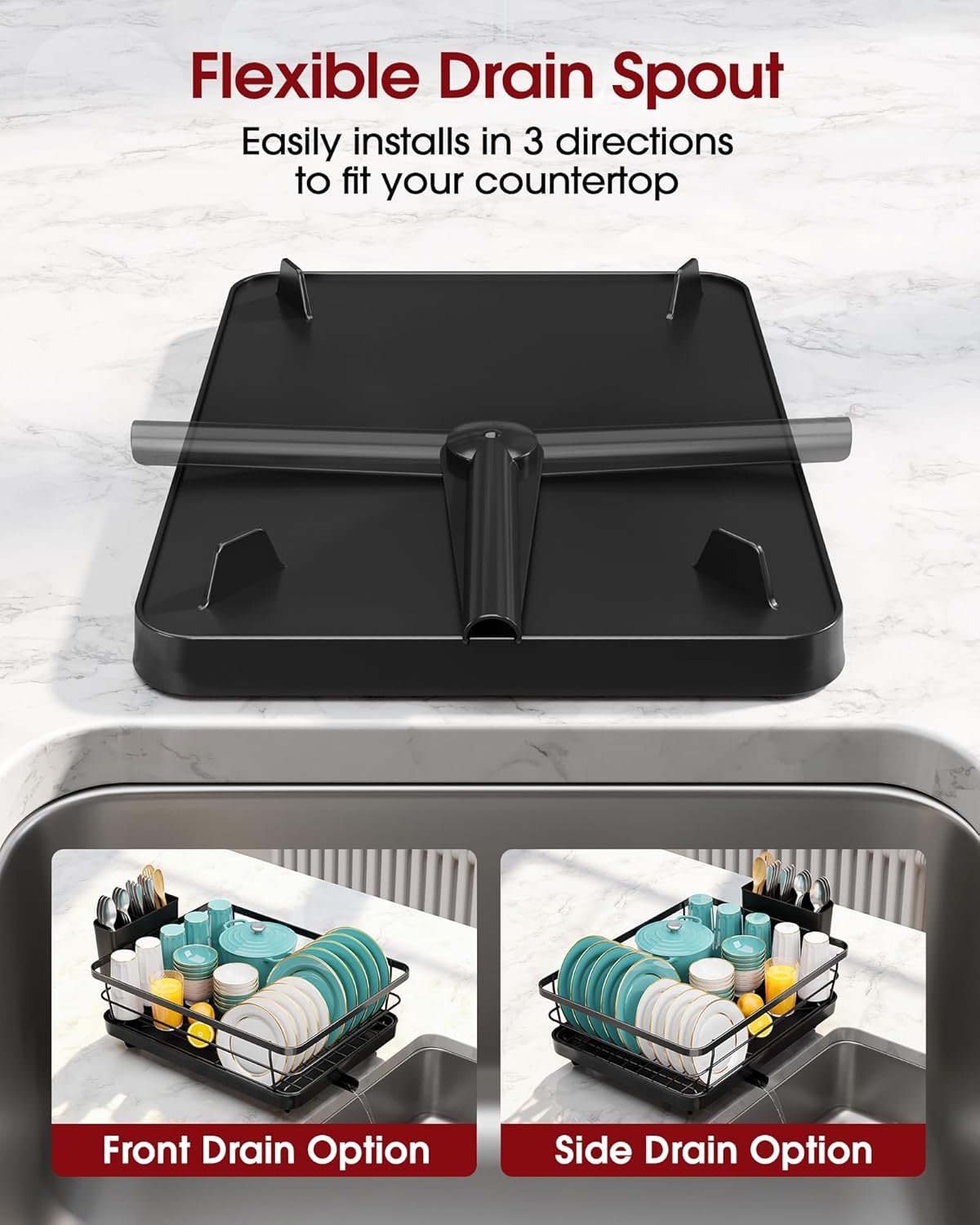 - Efficient drainboard rack: Specially designed drain spout channels water away from surfaces—no more soggy messes.